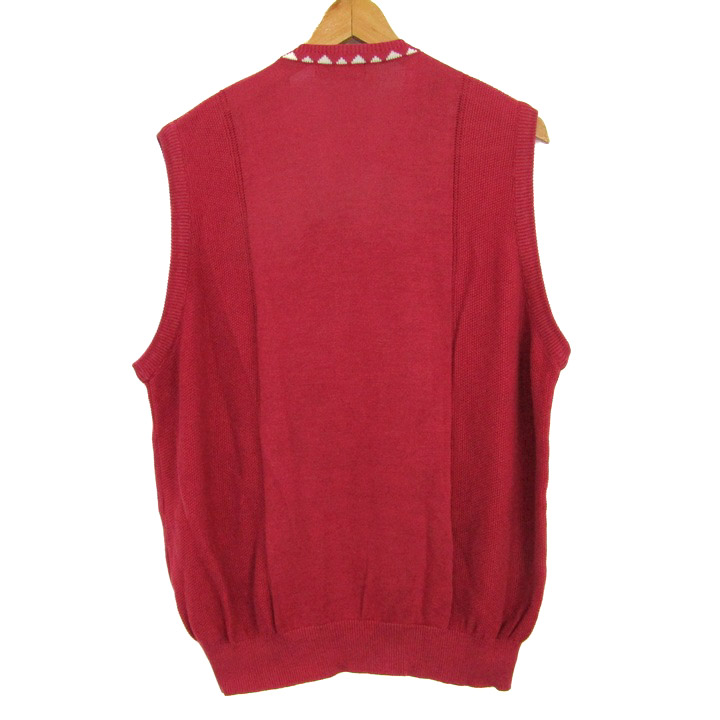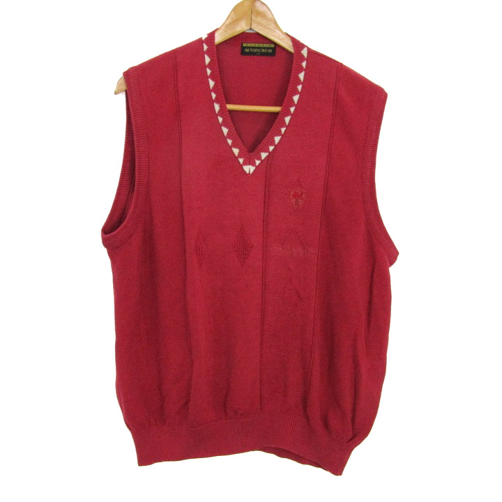 マンシングウェア ニットベスト ジャケット アウター クラシック Vネック ゴルフウエア メンズ LAサイズ 赤×白 Munsing wear 【中古】
