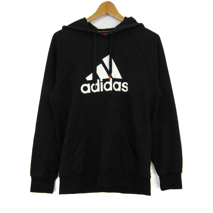 アディダス パーカー トップス プルオーバー スウェット スポーツウエア メンズ Mサイズ ブラック adidas 【中古】
