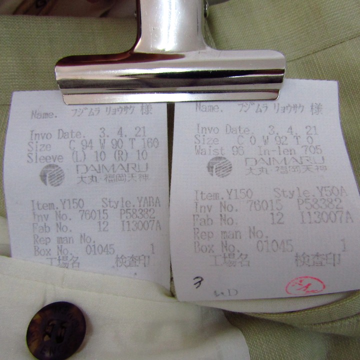 [状態追記]記名有/ジャケットに部分的な汚れ有り/パンツは良品