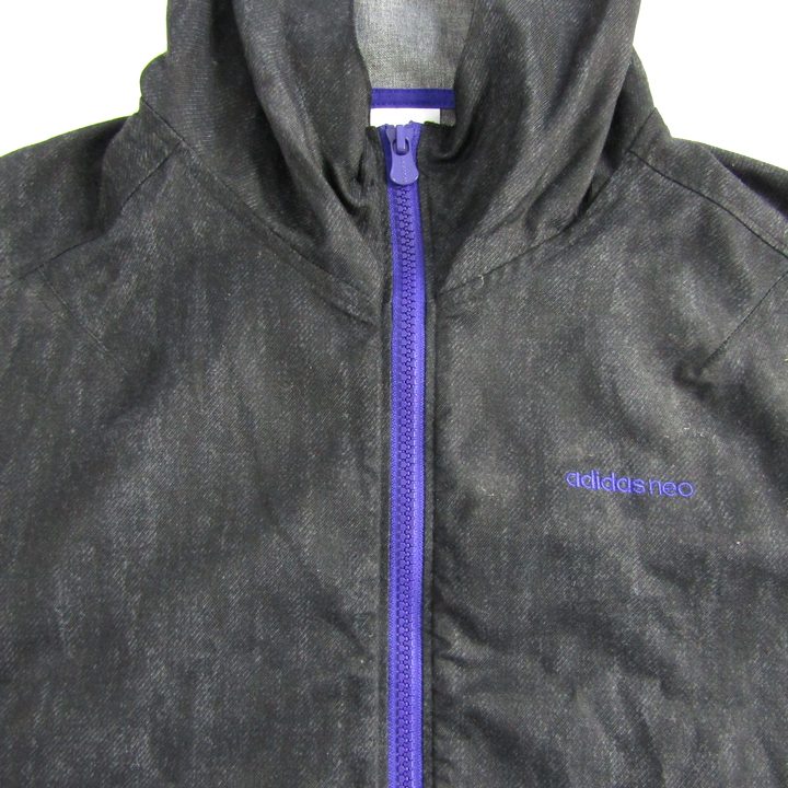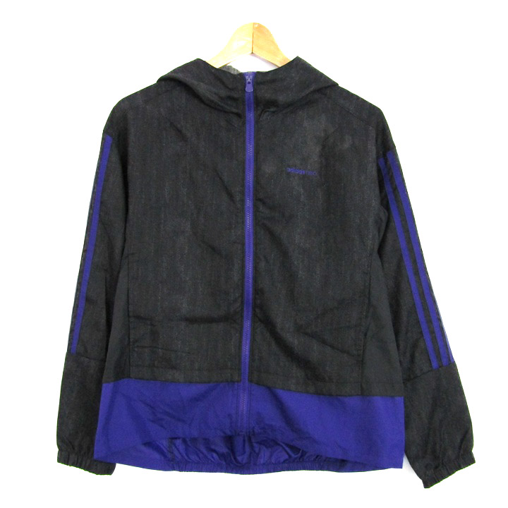 アディダス ブルゾン ジャケット アウター パーカー ネオレーベル スポーツウエア レディース Lサイズ 黒×紫 adidas 【中古】