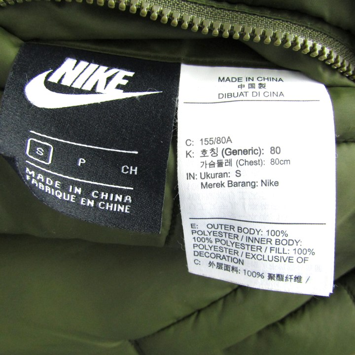 ナイキ 中綿ジャケット ジャンパー アウター スポーツウエア レディース Sサイズ グリーン NIKE 【中古】