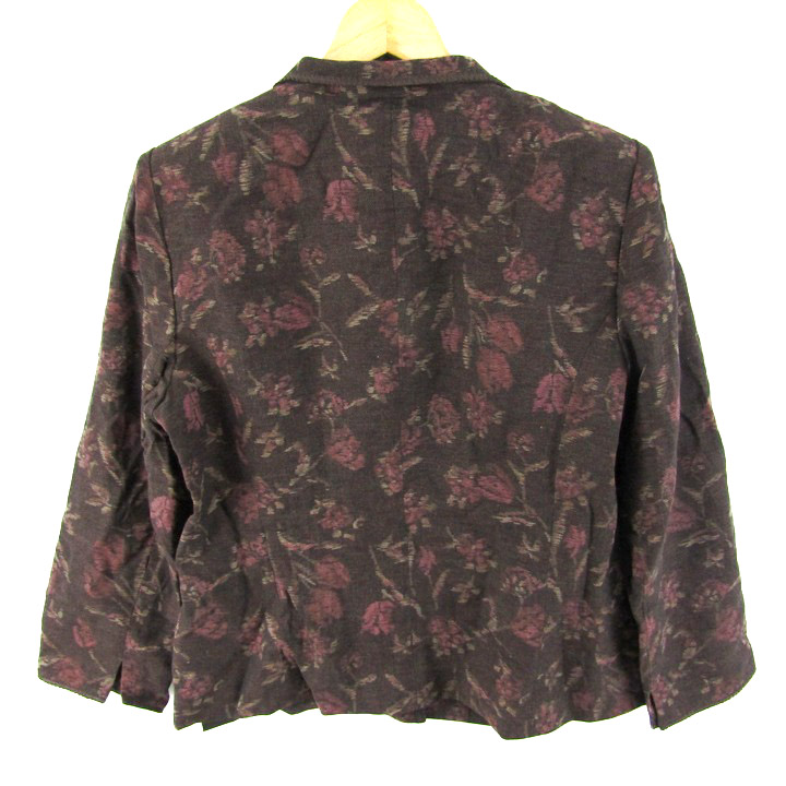 レリアン テーラードジャケット アウター 花柄 日本製 イタリア製生地使用 大きいサイズ 未使用品 レディース 13サイズ 茶 Leilian 【中古】