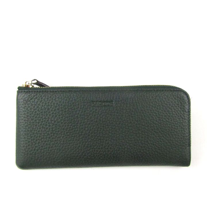 バルコス 長財布 未使用 レザー L字ファスナー ブランド ロングウォレット メンズ レディース グリーン BARCOS 【中古】