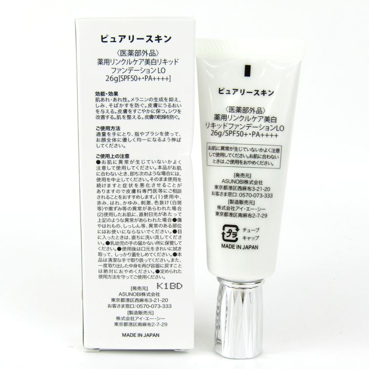 ピュアリースキン 薬用リンクルケア美白リキッドファンデーション 若干使用 コスメ レディース 26gサイ...