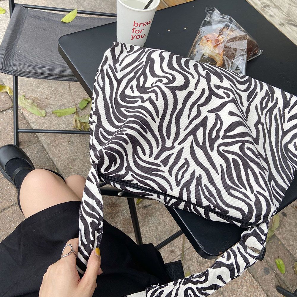 ・ゼブラ柄がインパクトのカジュアルショルダーバッグ。