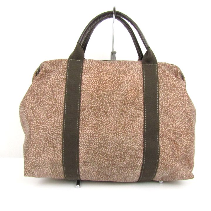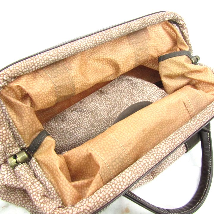 ボルボネーゼ ボストンバッグ ポーチ付 うずら柄 ミニボストン 鞄 カバン ブランド レディース ブラウン BORBONESE 【中古】