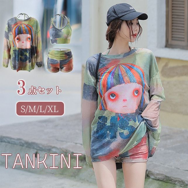 ■コメント・ポップでスポーティな印象のタンキニ3点セットです。・そのまま着ても、裾を絞っても◎・安心感のあるコンフォートな着心地。・ショートパンツはサイドシャーリングでディテールにこだわりました。■サイズ参照画像に記載【S】参考身長:150-160cm、バスト:70ABC-80A【M】参考身長:155-165cm、バスト:75B-80ABC【L】参考身長:160-165cm、バスト:80BC-85AB【XL】参考身長:165-170cm、バスト:80AB-85AB※平置き採寸の為、2~3cm誤差が生じる場合がございます。ご了承くださいませ。■カラー画像の通り■伸縮性あり■裏地なし■生地の厚さ普通■透け感なし■素材表地:ポリエステル90%、 ポリウレタン10%裏地:ポリエステル繊維100%