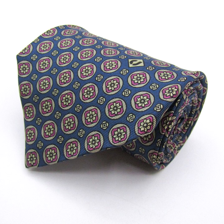 シャルル・ジョルダン ブランド ネクタイ シルク 小紋柄 花柄 総柄 PO メンズ ネイビー CHARLES JOURDAN 【中古】