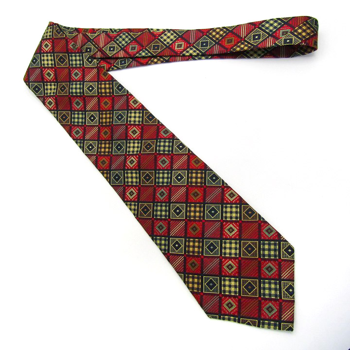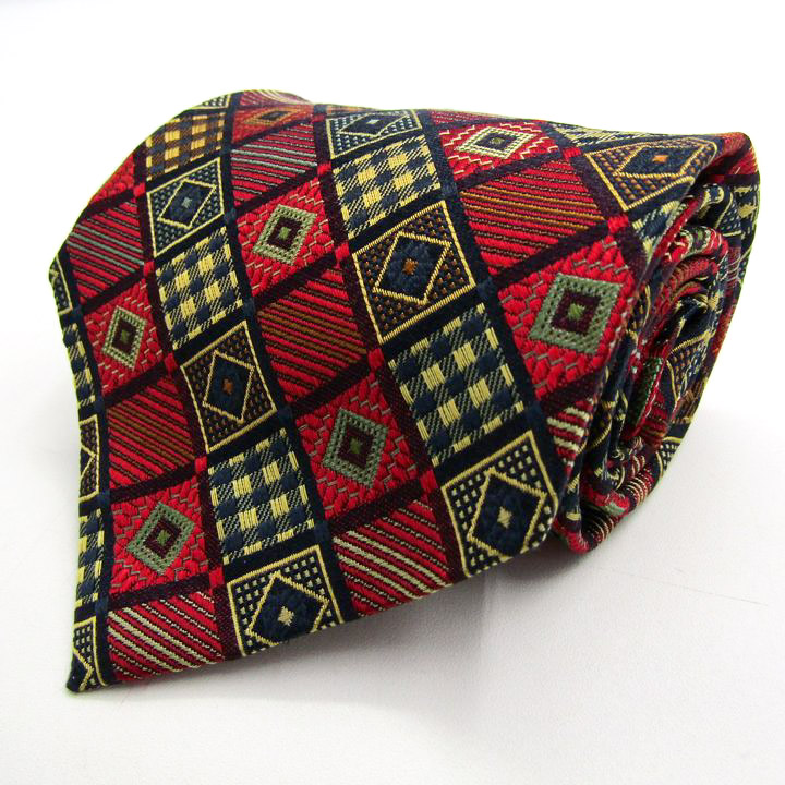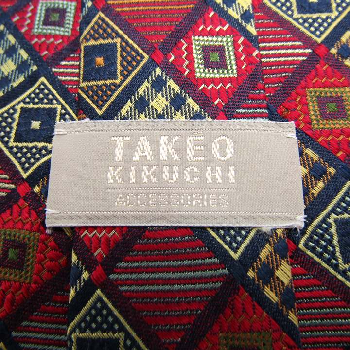 タケオキクチ ブランド ネクタイ シルク チェック柄 総柄 格子柄 ドット柄 PO メンズ レッド TAKEO KIKUCHI 【中古】