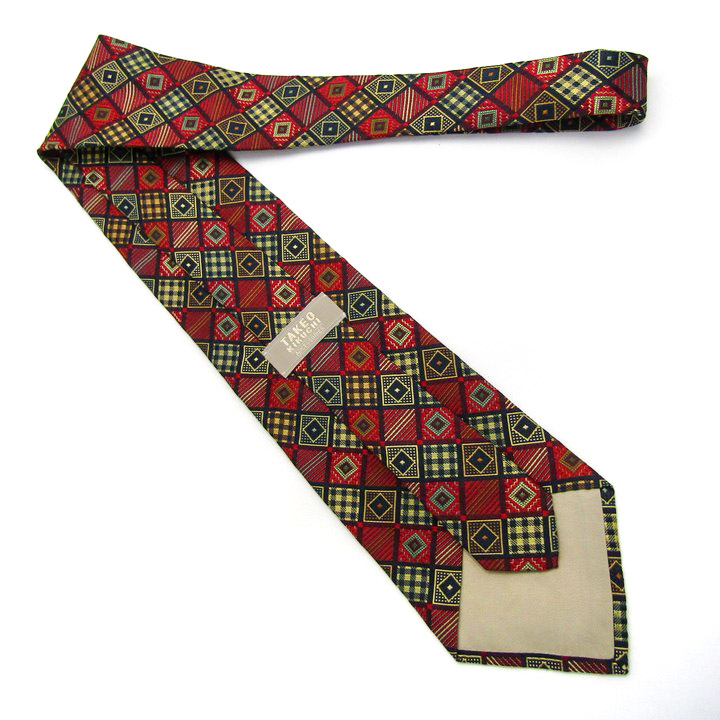 タケオキクチ ブランド ネクタイ シルク チェック柄 総柄 格子柄 ドット柄 PO メンズ レッド TAKEO KIKU...