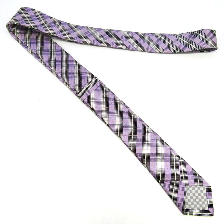 コムサイズム ブランド ネクタイ シルク チェック柄 格子柄 ナロータイ PO メンズ パープル COMME CA ISM 【中古】