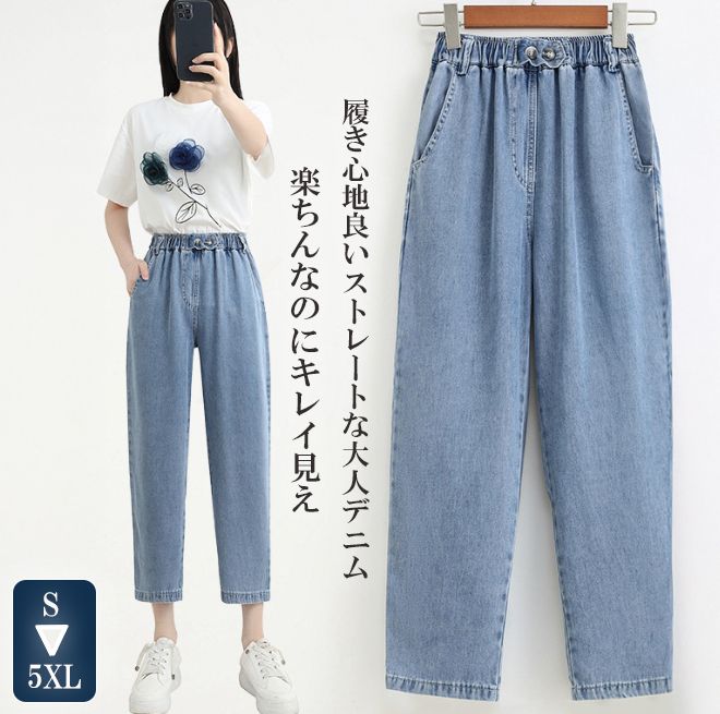 レディース ジーンズ ゆったり 春 秋 9分丈 デニムパンツ ハイウエスト ワイドパンツ 着痩せ