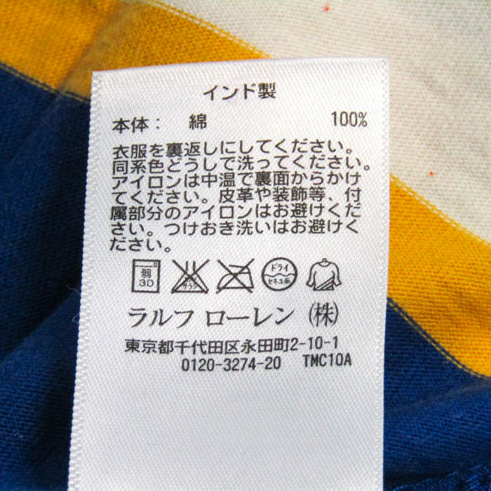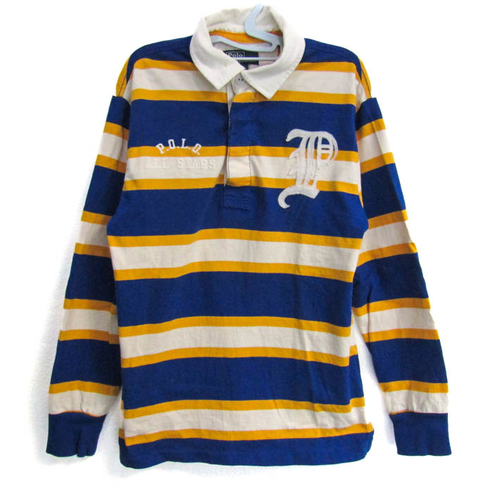 ポロバイラルフローレン 長袖ラガーシャツ コットン トップス キッズ 男の子用 Sサイズ 青×白×黄 Polo b...