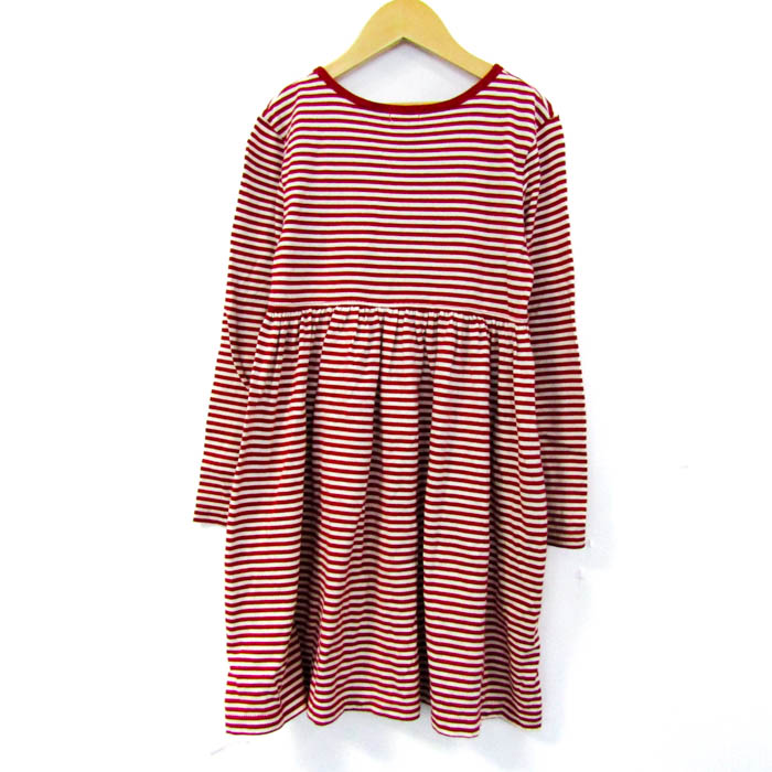 シャーリーテンプル ワンピース 長袖 コットン トップス 赤 白 キッズ 女の子用 130サイズ レッド×ホワイト Shirley Temple 【中古】