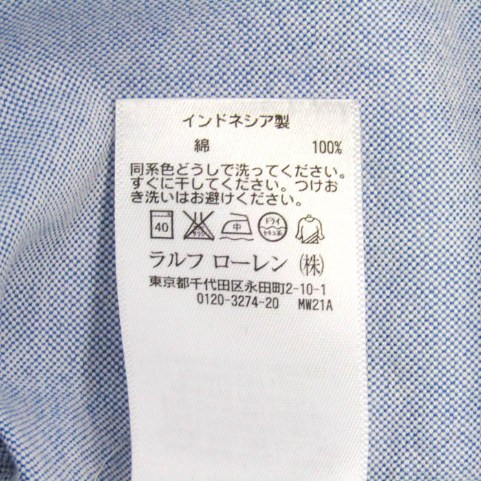 ラルフローレン 長袖シャツ コットン100% ポニーロゴ ブランド トップス キッズ 男の子用 140サイズ 水色系 RALPH LAUREN 【中古】