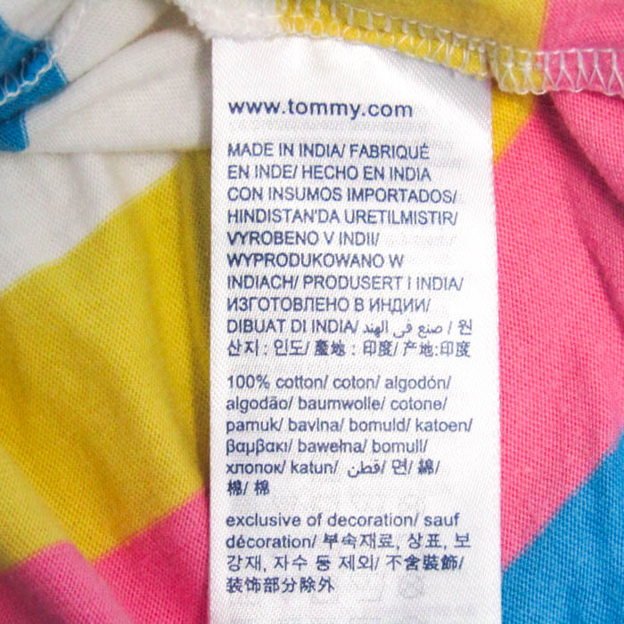 トミーヒルフィガー 半袖Tシャツ コットン100% ブランド トップス キッズ 女の子用 Sサイズ ピンク×黄...