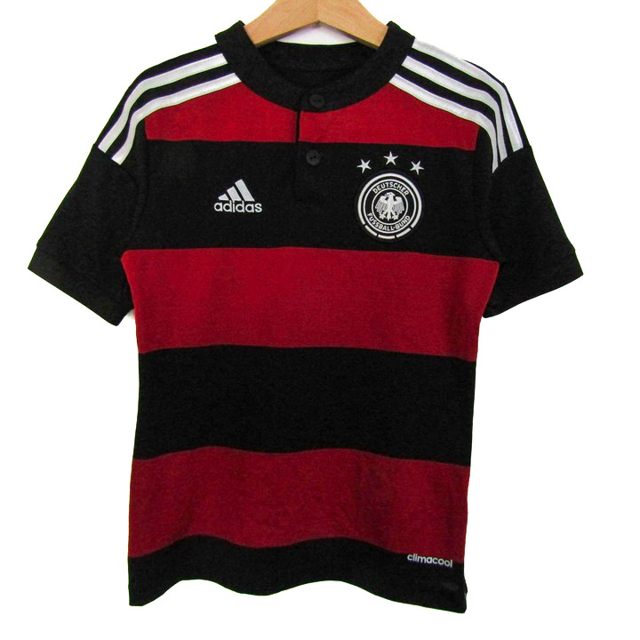 アディダス 半袖Tシャツ トップス サッカー ドイツ代表 ユニフォーム クライマクール キッズ 男の子用 130サイズ 黒×赤 adidas 【中古】