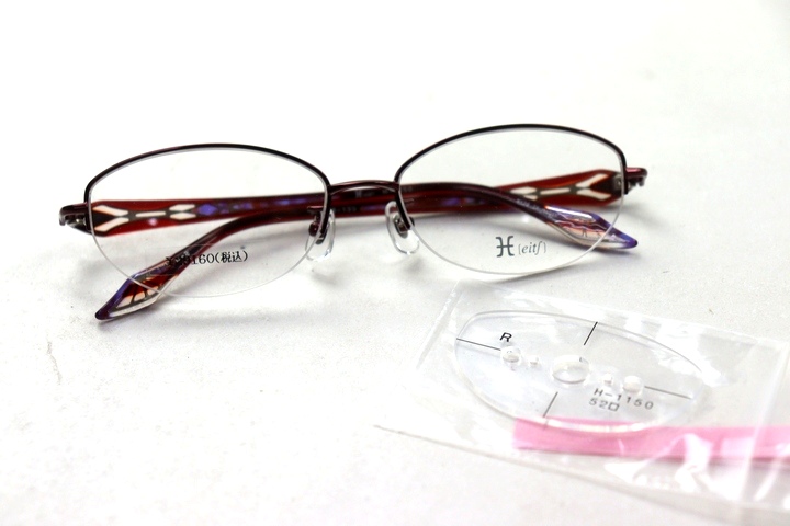 エイチ メガネ 眼鏡 未使用 日本製 ハーフリム フレーム H-1150 ブランド アイウェア レディース 52□16-...