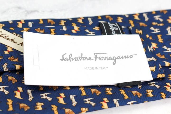 サルヴァトーレフェラガモ ブランド ネクタイ シルク 動物柄 未使用タグ付 PO メンズ ネイビー Salvator...