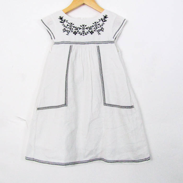 べべ ワンピース トップス フレンチ袖 刺繍 キッズ 女の子用 120サイズ ホワイト BeBe 【中古】
