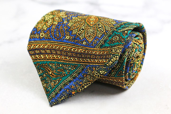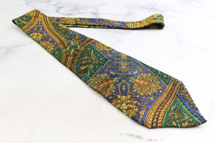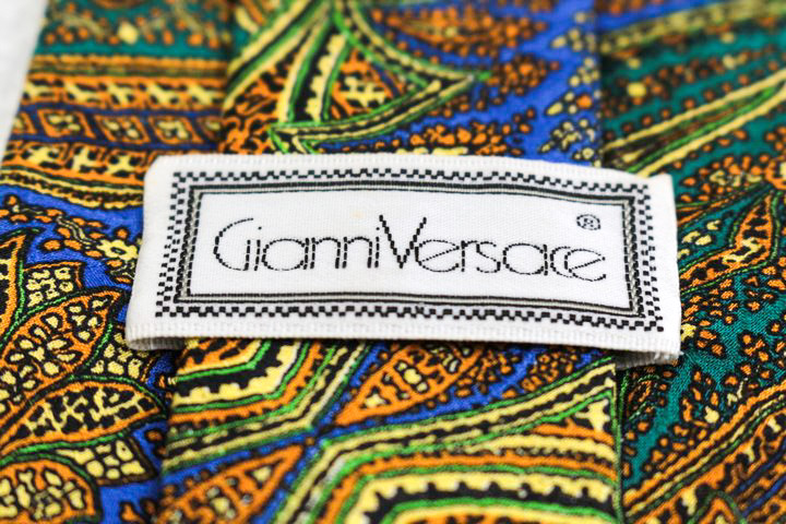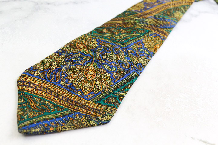 ジャンニ・ヴェルサーチ ブランド ネクタイ シルク 伊製生地 エスニック柄 レトロ PO メンズ イエロー G...