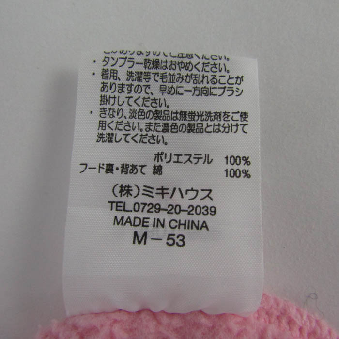 ミキハウス ポンチョ ジャケット ブランド アウター キッズ 女の子用 Fサイズ ピンク MIKIHOUSE 【中古】