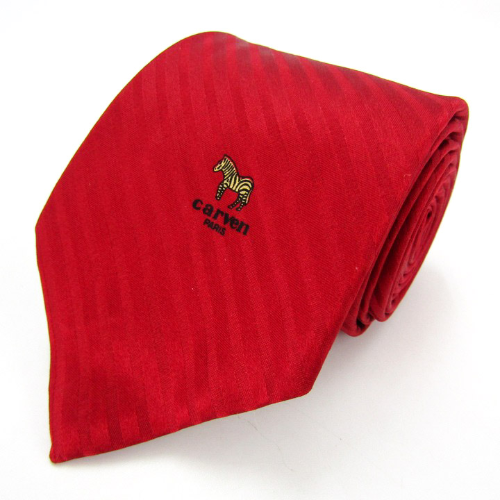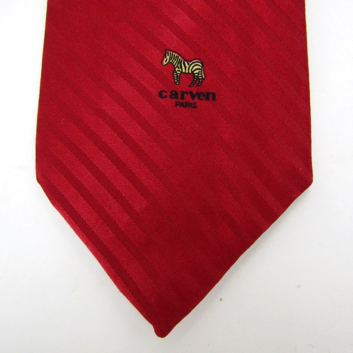 カルヴェン ブランド ネクタイ シルク ストライプ柄 ワンポイント PO メンズ レッド Carven 【中古】