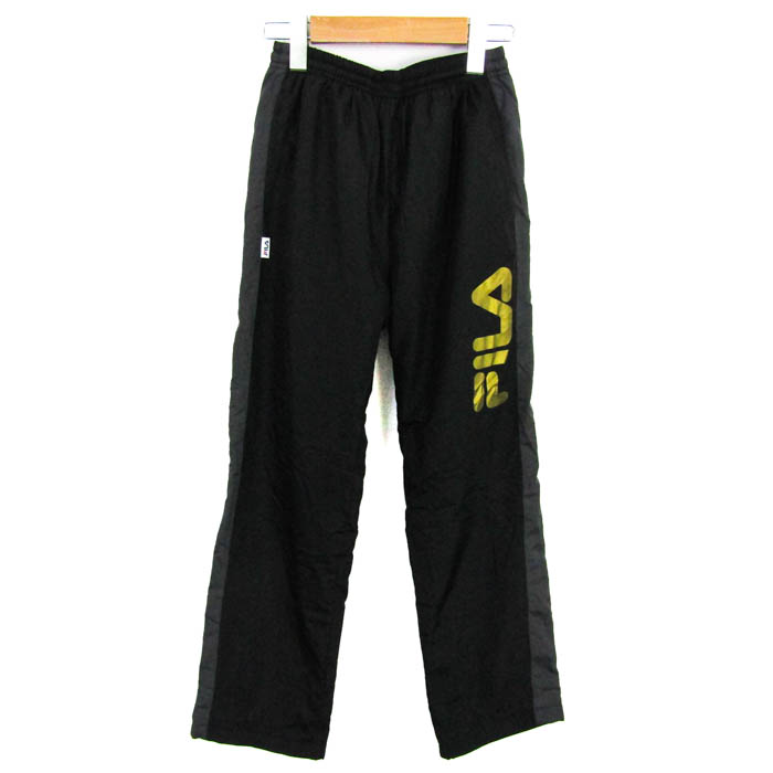 フィラ ウィンドブレーカー下 ジャージ スポーツウエア ボトムス 記名有 キッズ 男の子用 150サイズ ブラック×ゴールド FILA 【中古】