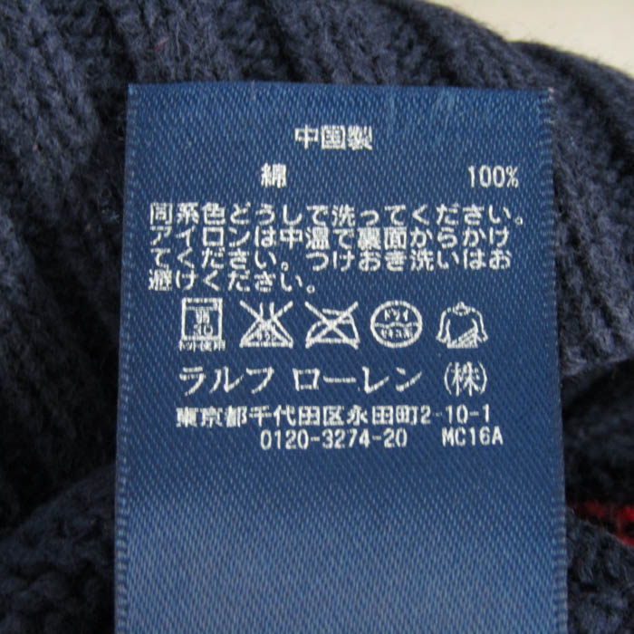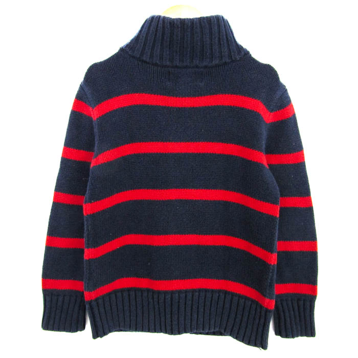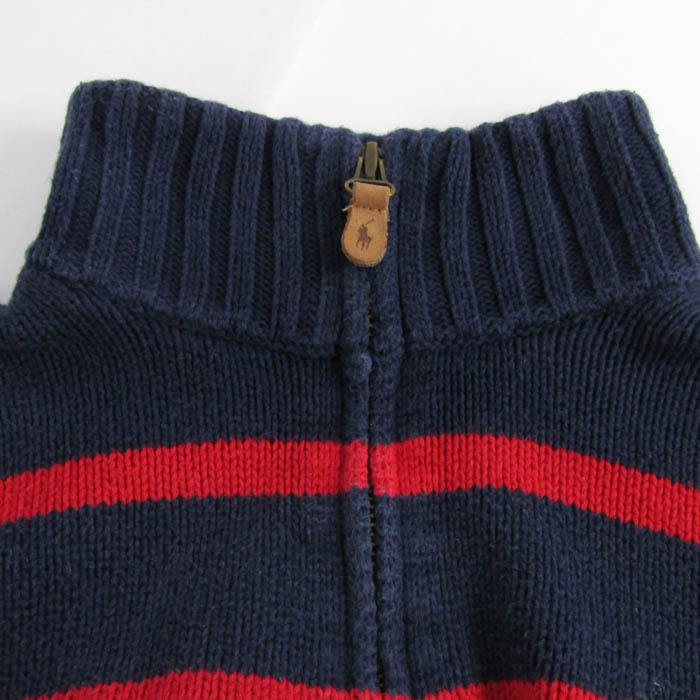ポロバイラルフローレン ニット 長袖 ハーフジップ トップス キッズ 男の子用 4/4Tサイズ ネイビー×レッド Polo by Ralph Lauren 【中古】