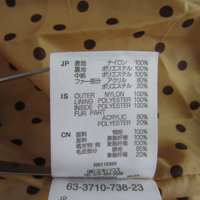 ミキハウス ダブルビー ナイロンジャケット フード付き キルティング アウター キッズ 女の子用 110サイズ ブラウン MIKIHOUSE 【中古】