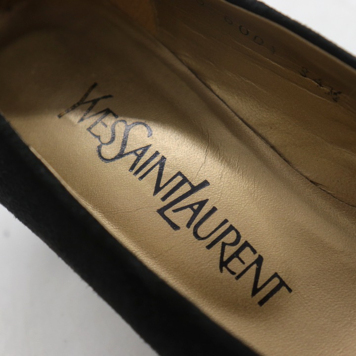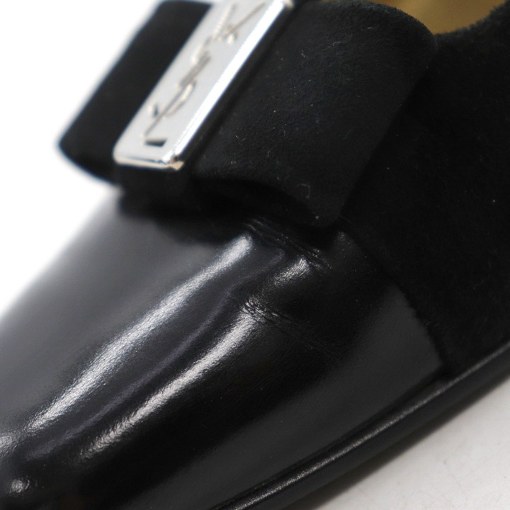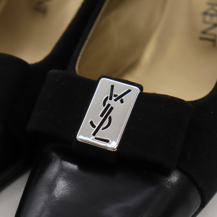 イヴ・サンローラン パンプス リボン ロゴ スクエアトゥ ブランド シューズ 靴 レディース 34.5サイズ ...