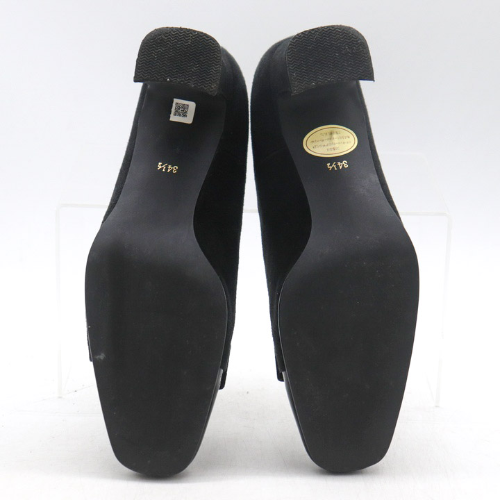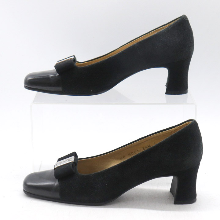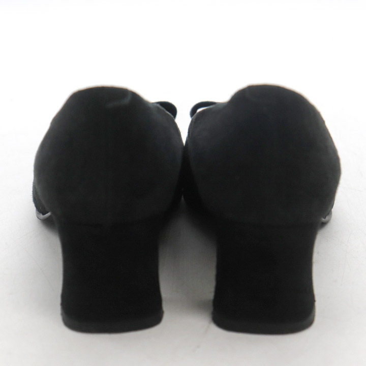イヴ・サンローラン パンプス リボン ロゴ スクエアトゥ ブランド シューズ 靴 レディース 34.5サイズ ブラック YVES SAINT LAURENT 【中古】