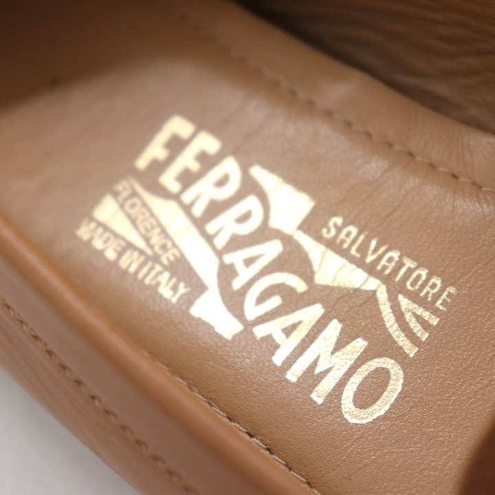 フェラガモ ローファー スリッポン ガンチーニ ドライビングシューズ ブランド 靴 レディース 5サイズ キャメル FERRAGAMO 【中古】