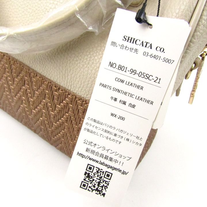 ラ・バガジェリー ボストンバッグ レザー×メッシュコンビ 2way 未使用 ショルダーバッグ 鞄 レディース ベージュ LA BAGAGERIE 【中古】