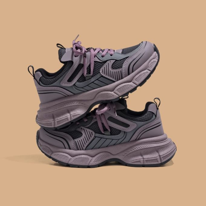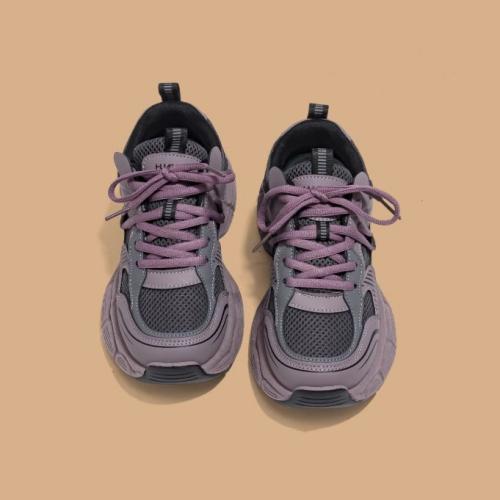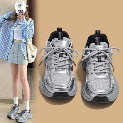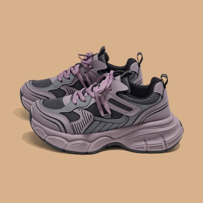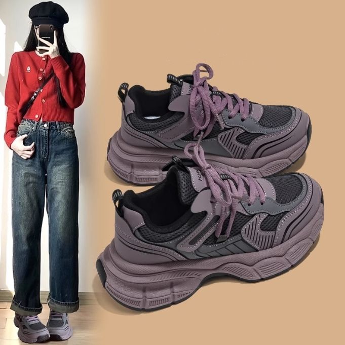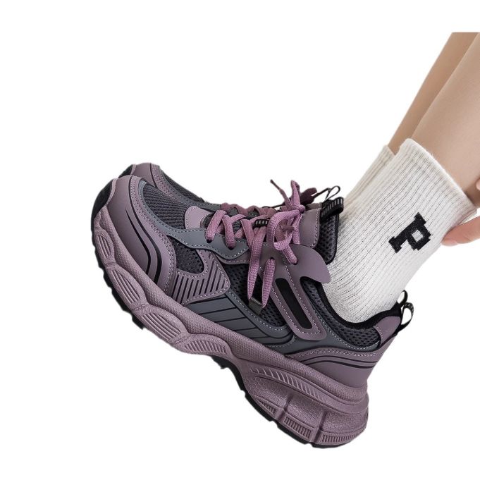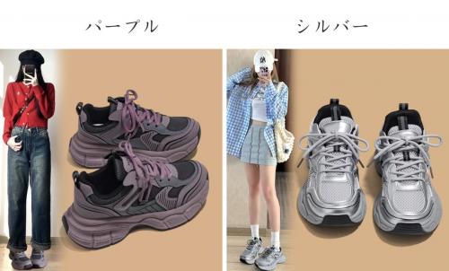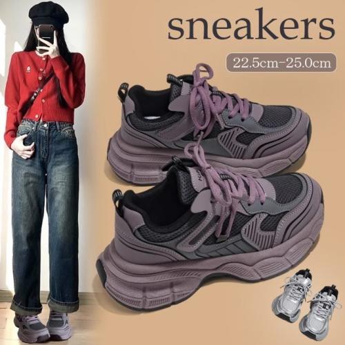新作 レディース メッシュスニーカー 紐靴 シューズ ボリュームソール 厚底 美脚