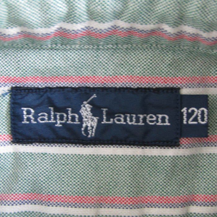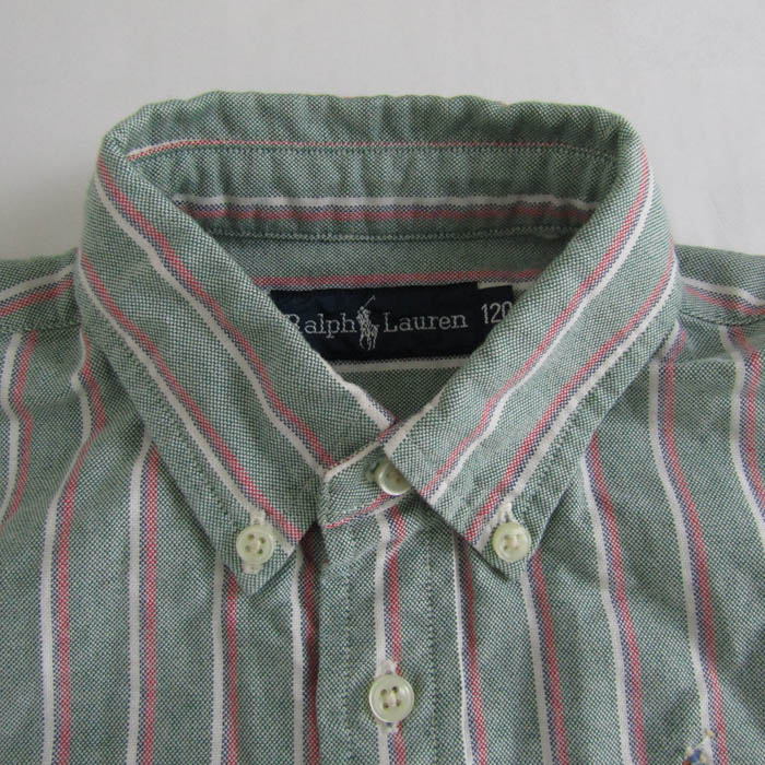 ラルフローレン 長袖シャツ トップス ストライプ柄 ボタンダウン キッズ 男の子用 120サイズ グリーン RALPH LAUREN 【中古】