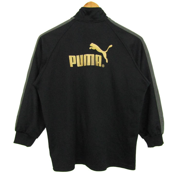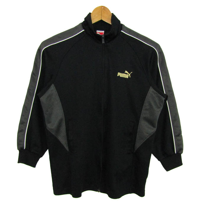 プーマ ジャージ トラックジャケット スポーツ アウター 黒 白 キッズ 男の子用 140サイズ ブラック×ホワイト×イエロー PUMA 【中古】