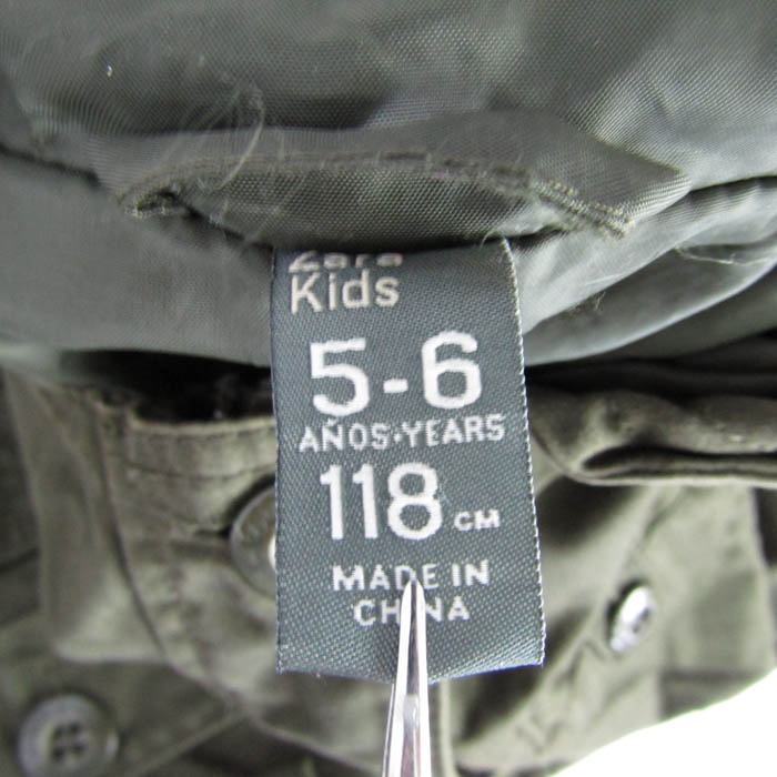 ザラ ミリタリーコート ブルゾン ジャケット アウター キッズ 男の子用 118(5-6)サイズ カーキ ZARA 【中古】