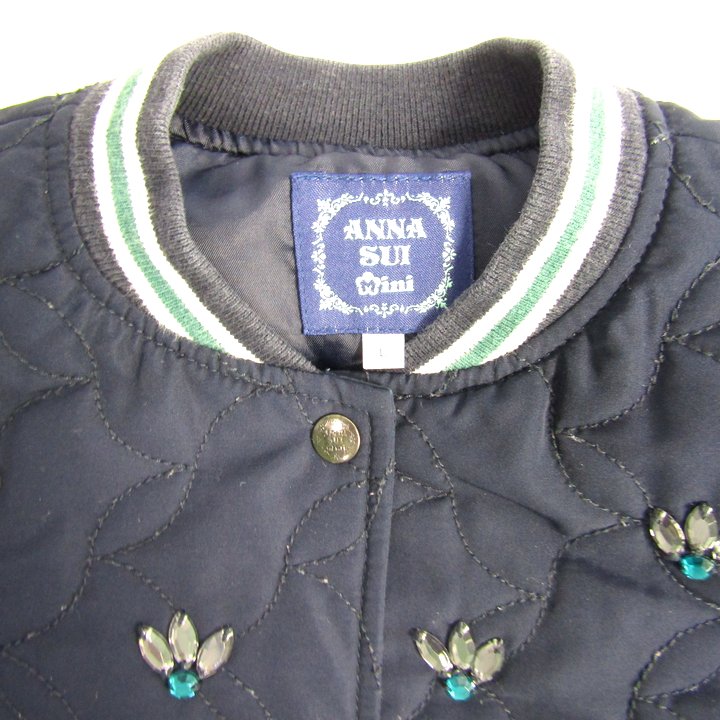 アナスイミニ ブルゾン ジャケット アウター キルティング ビジュー キッズ 女の子用 Lサイズ ネイビー ANNA SUI mini 【中古】