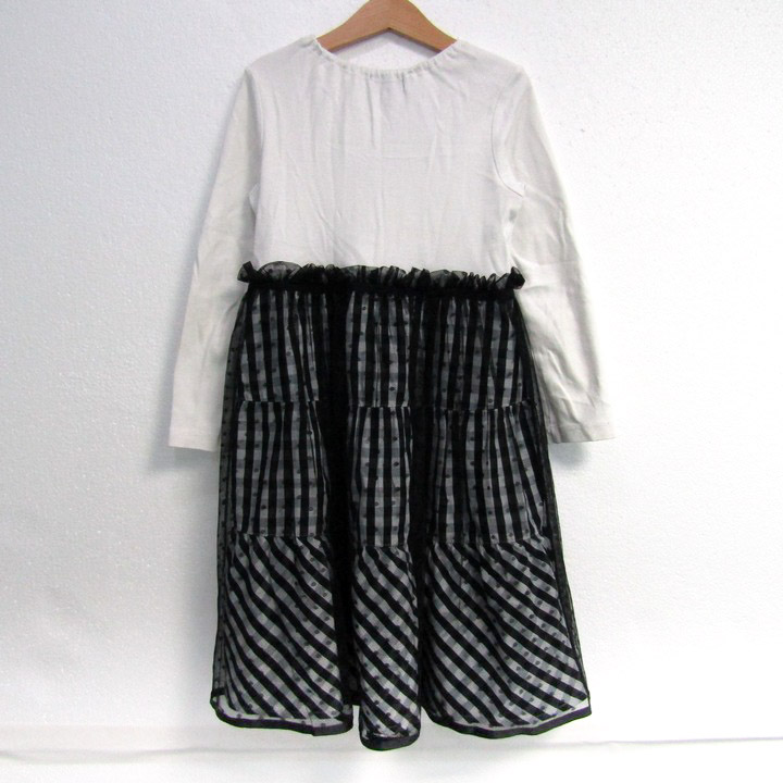 アナスイミニ ワンピース トップス 長袖 チェック柄 レース キッズ 女の子用 130(9)サイズ 白×黒×紫 ANN...