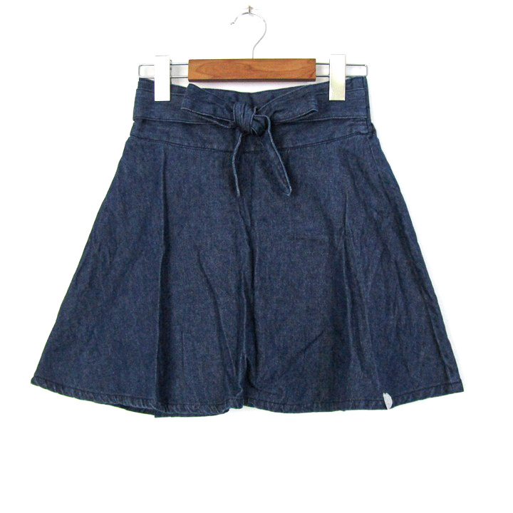 ピンクラテ スカート ボトムス デニム ウエストリボン キッズ 女の子用 S/160サイズ インディゴ PINK-latte 【中古】