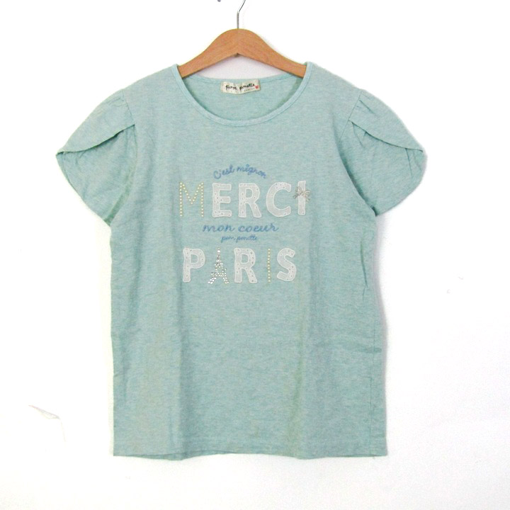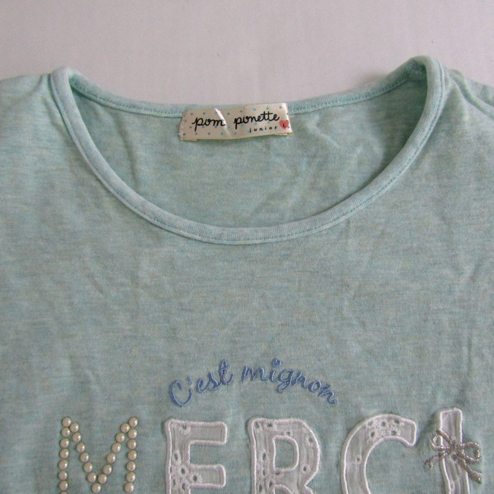 ポンポネット 半袖Tシャツ トップス 刺繍 コットンT キッズ 女の子用 L(160)サイズ ミントグリーン pom ponette 【中古】