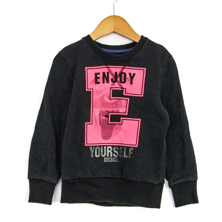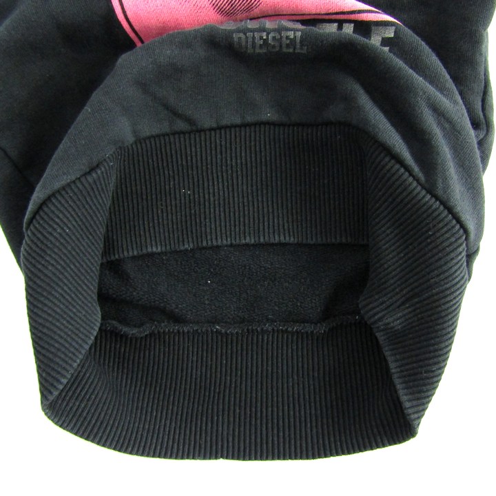 ディーゼル スウェット トレーナー トップス 裏起毛 キッズ 男の子用 XXSサイズ 黒×ピンク DIESEL 【中古】