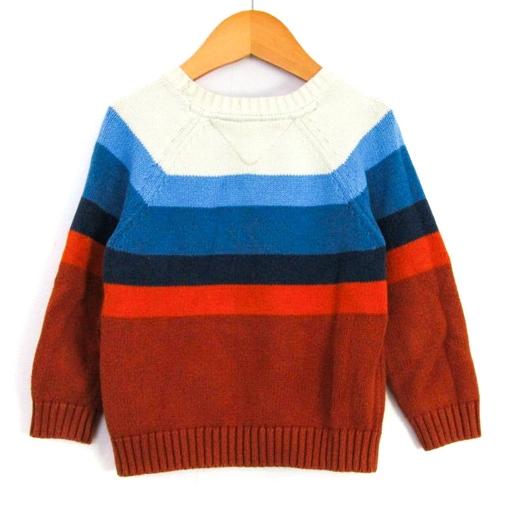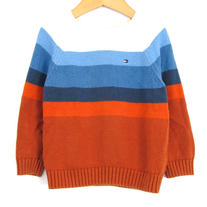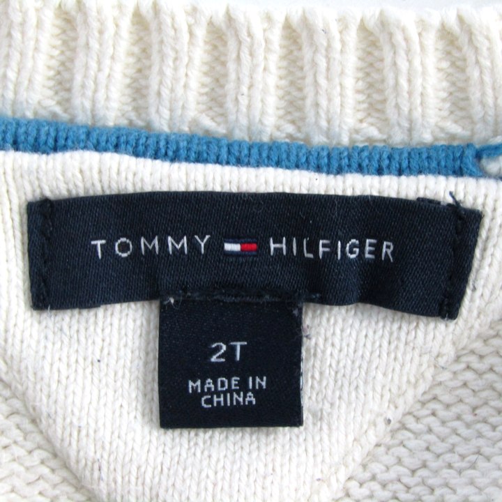 トミーヒルフィガー セーター トップス 長袖 クルーネック コットンニット ベビー 男の子用 2Tサイズ 白×青×茶 TOMMY HILFIGER 【中古】