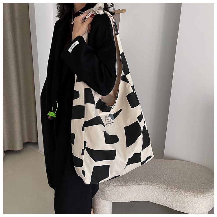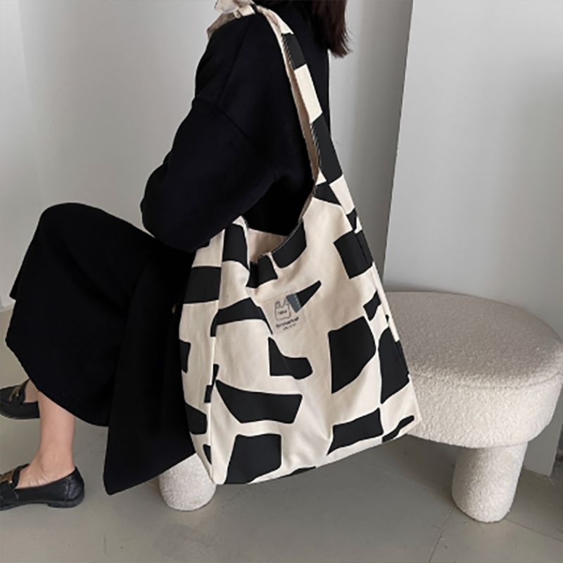 ■コメント・コーデのアクセントになるモノトーン柄トートです。・頑丈なキャンバス生地で大容量サイズ。・折りたたんで持ち運べるのでエコバッグ、サブバッグとしても大活躍。・デイリー使いしたいバッグです。※5点以上~ご注文の場合、より『お得』に!是非ご活用ください。■サイズ(約cm)幅34cm×高さ38cm×マチ13cm/重量410g■カラー画像に記載■素材キャンバス■裏地あり■内ポケットあり
