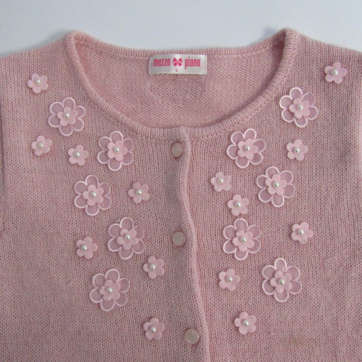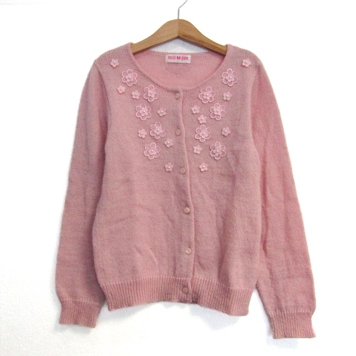 メゾピアノ カーディガン 長袖 クルーネック お花モチーフ トップス キッズ 女の子用 Lサイズ ピンク Mezzo Piano 【中古】