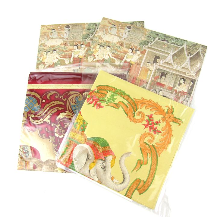 ジムトンプソン ハンカチ ミニスカーフ 2点セット 未使用 ゾウ柄 ブランド まとめて レディース レッド×カーキ JIM THOMPSON 【中古】