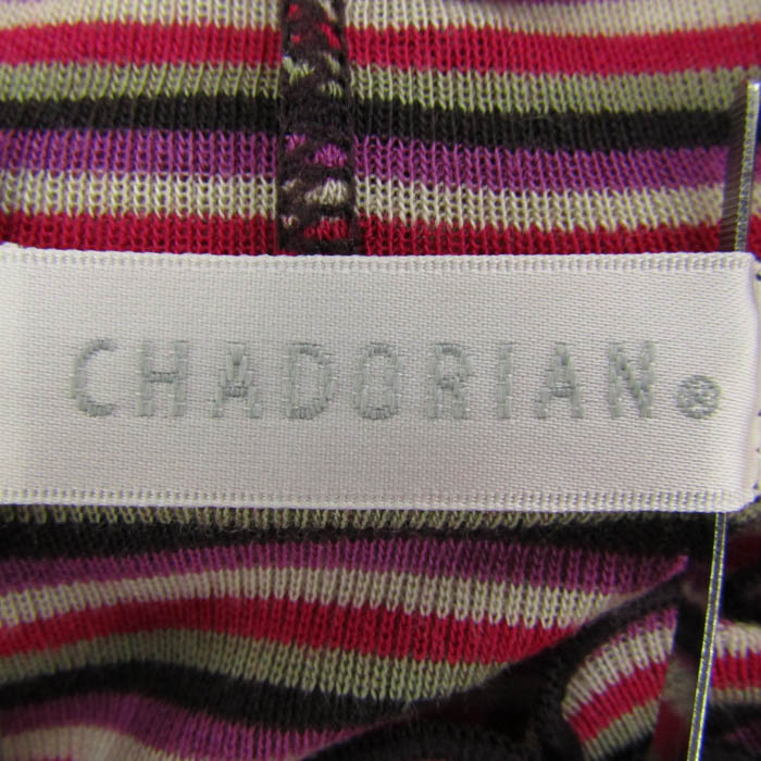 チャドリアン ニット トップス ハイネック 長袖 ボーダー柄 未使用品 レディース Lサイズ 赤×グレー×白 CHADORIAN 【中古】