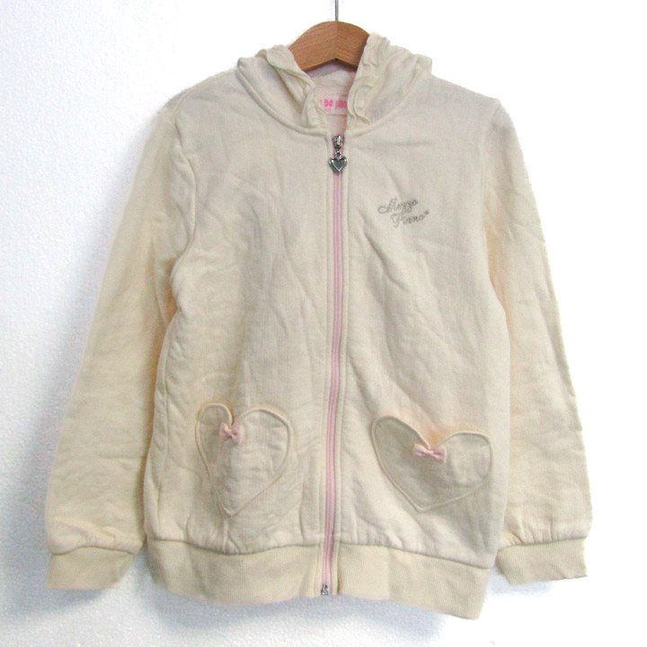 メゾピアノ パーカー トップス ジップアップ スウェット 裏起毛 キッズ 女の子用 130サイズ クリーム Mezzo Piano 【中古】