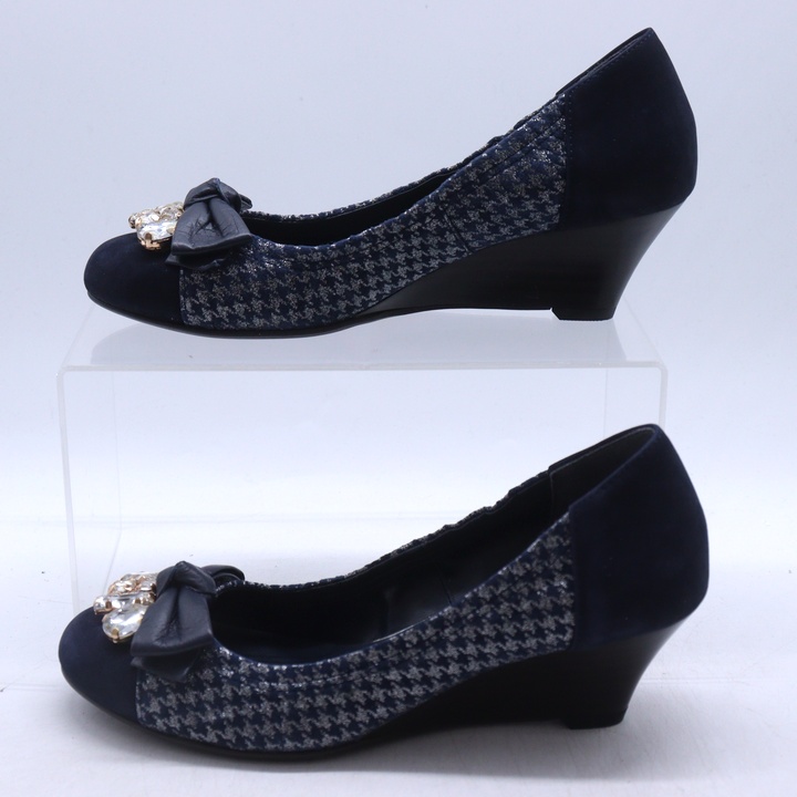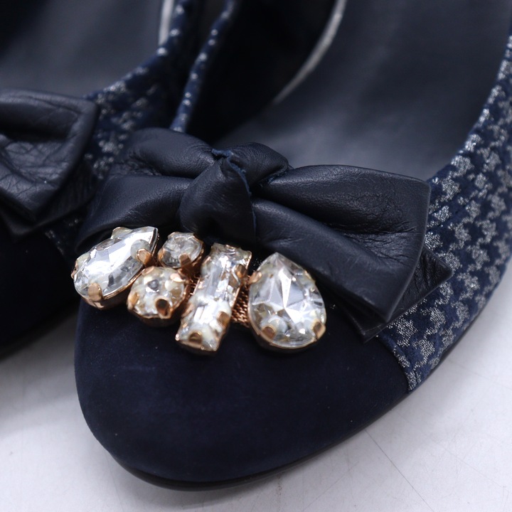 ダイアナ パンプス ラウンドトゥ ウエッジソール ブランド 靴 シューズ 日本製 レディース 22.5サイズ ネイビー DIANA 【中古】